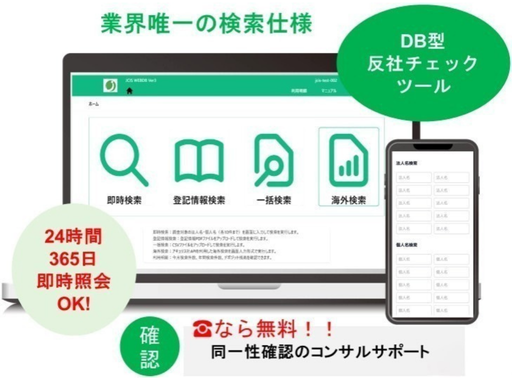 反社情報が豊富に蓄積され登録・保存・照会できるサービスです。